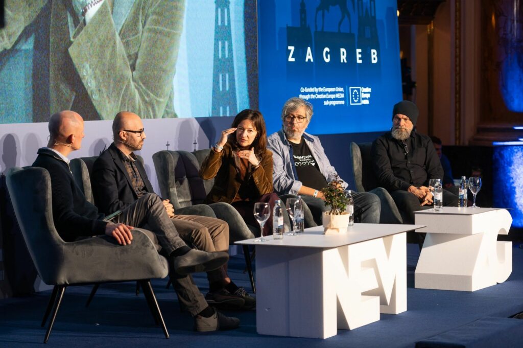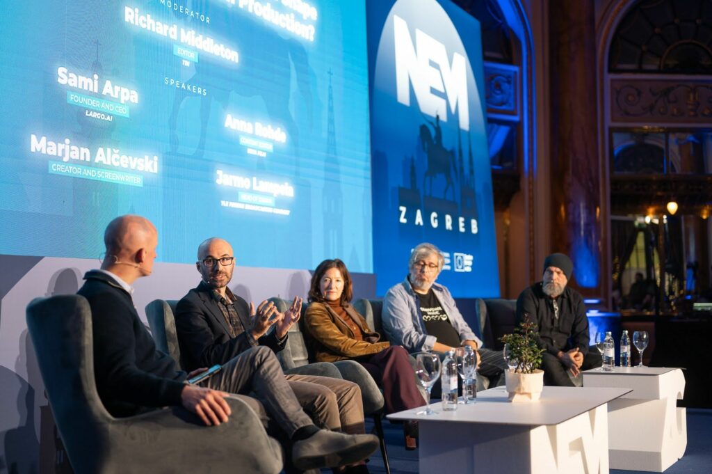 NEM (New Europe Market) hosted an AI panel in Zagreb to discuss the future of AI in TV and Film Production from the perspectives of a producer, writer, broadcasting company, and tech company; with Anna Rohde-Seyfried from Beta Film GmbHMarjan Alcevski as a screenwriter, and Jarmo Lampela from Yle, and Sami Arpa representing Largo.ai, with the moderation of Richard Middleton from TBI.