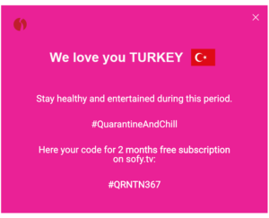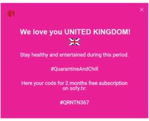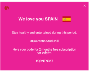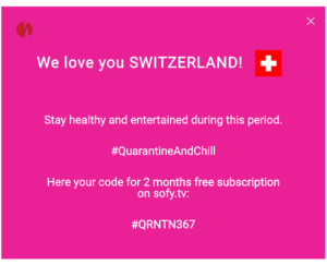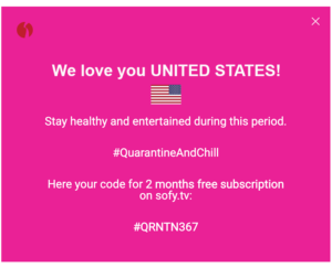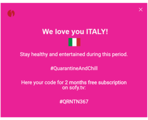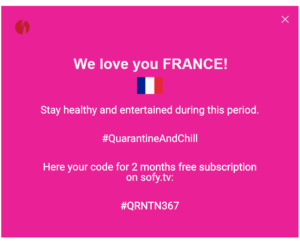 We also open our video-on-demand platform, sofy.tv, 2 months for free, for everyone living in countries that are currently under quarantine.